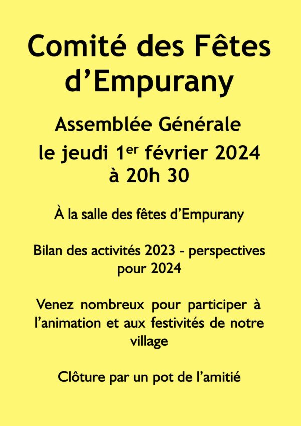 Assemblée générale du comité des fêtes d’Empurany le 1er février 2024