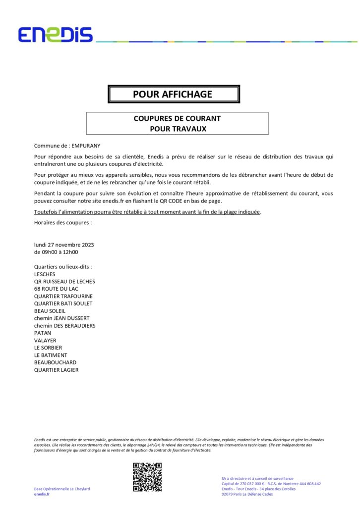 Coupure de courant le lundi 27 novembre 2023 de 9h00 à 12h00 Par Corine Faure-Bassano|2023-11-14T12:24:19+01:0014 novembre 2023|A la une|0 commentaire