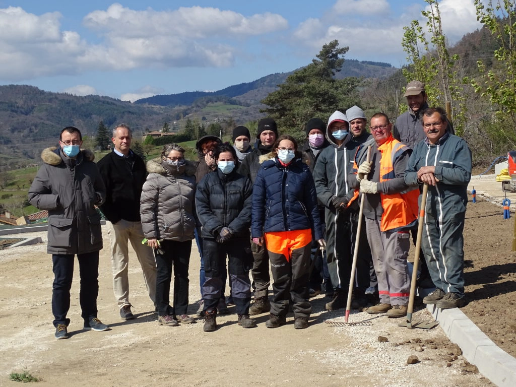 Les élèves de l’école de production de l’ensemble scolaire Charles-de-Foucauld à Lamastre ont participé à l’aménagement paysager de l’espace extérieur de la salle polyvalente. Encadrés par Guillaume Favé, leur maître professionnel et jardinier paysagiste à Champis, les élèves ont travaillé pendant une semaine sur le chantier : implantation d’arbustes de décoration, pose de toile hors sol, installation du système d’irrigation…Crise sanitaire oblige, les élèves ont du travailler en alternance en deux équipes de quatre.