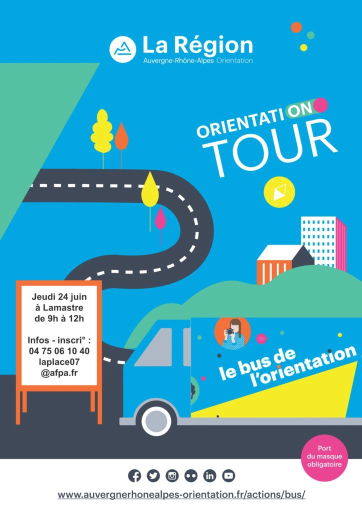 Jeudi 24 juin 2021, à Lamastre, de 9h à 12h, place Pradon, le Bus de l’Orientation de La Région Auvergne Rhône Alpes fera étape à Lamastre.