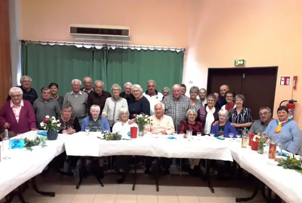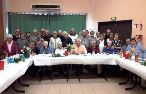Chansons et blagues ont animés le repas qui fût apprécié de tous sans oublier l’inévitable « joyeux anniversaire » accompagnant les gâteaux afin d’honorer plus particulièrement Odette, Raymonde, Yvette, Josette à l’occasion de leur 80 ans ainsi que Renée et Armand pour les aider à souffler leur 70 bougies respectives! (Soyez rassurés ils n’ont pas soufflé 140 bougies et 70 non plus…Ouuuufff 😉 )