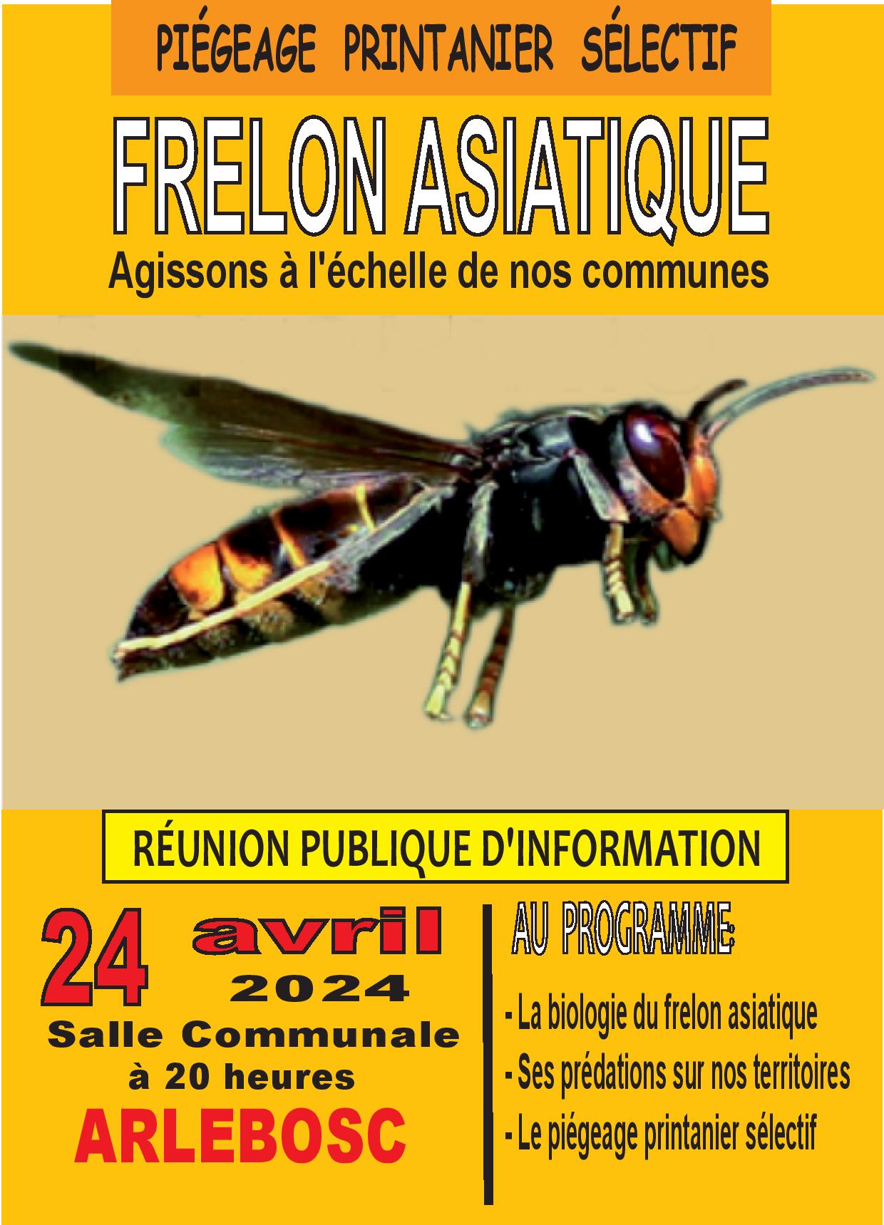 Réunion publique sur le frelon asiatique à Arlebosc Réunion publique sur le frelon asiatique le 24 avril à 20h00 à la salle communale d’Arlebosc. Par Corine Faure-Bassano|2024-04-15T09:29:12+02:0015 avril 2024|A la une|0 commentaire