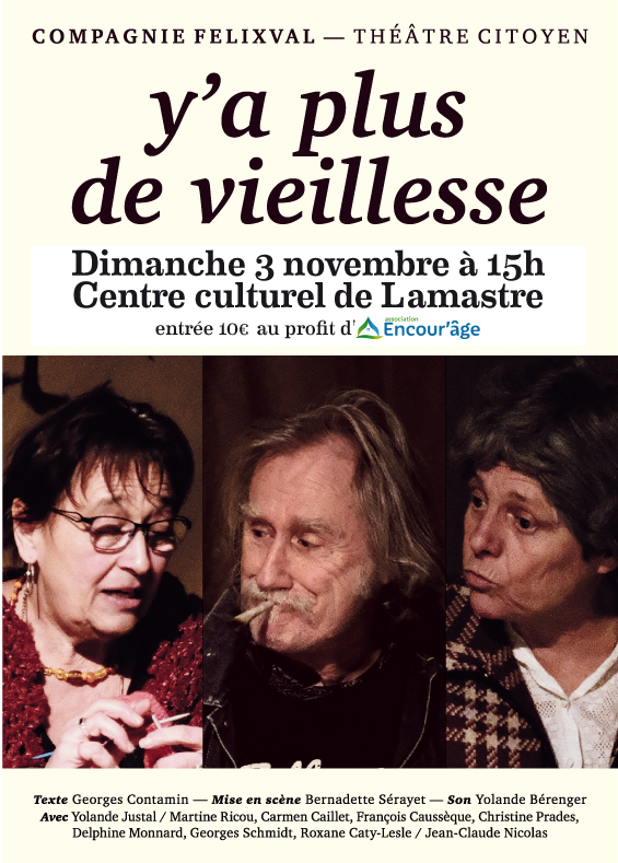 Théâtre à Lamastre le dimanche 3 novembre à 15h00 Cliquez sur l’image pour agrandir l’affiche Quand 3 vieux squattent le hall d’un immeuble… Une comédie décalée qui pose un certain regard sur les préoccupations des retraités et casse l’image traditionnelle des seniors. Dimanche 3 novembre à 15h00 au centre culturel de Lamastre. Par Corine Faure-Bassano|2024-10-23T10:45:09+02:0023 octobre 2024|A la une|0 commentaire